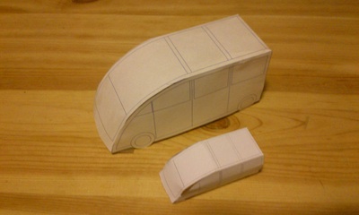 Kisbusz papírból kivágható és hajtogatható változata. A nagyobb A/4 lap, a kisebb egynegyed A/4 lap méretű. Cellux-szal vagy stifttel ragasztható össze.